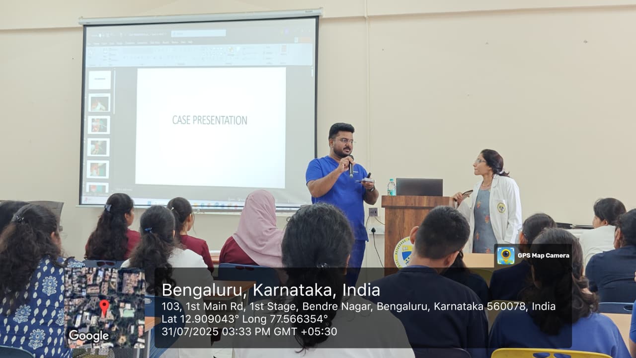 The Department of Prosthodontics successfully organized a lecture program on Geriatric Dentistry, featuring Dr. Supriya Manvi as the invited guest speaker on 25-06-2025. Dr. Supriya Manvi delivered a comprehensive lecture on "The Role of Dentist in Geriatric Dental Care" highlighting the unique challenges and considerations in managing the oral health of elderly patients. The program was attended by dental interns and postgraduate students, who benefited from her expertise and insights. The session provided valuable knowledge and perspectives on delivering optimal dental care to geriatric patients. The program concluded with a valedictory ceremony, during which the department expressed its sincere appreciation and gratitude to Dr. Supriya Manvi for sharing her expertise and enriching the learning experience of the participants.