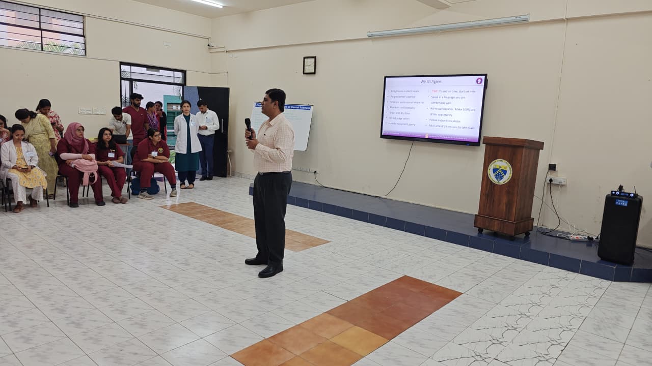 Soft Skills are personality traits and behaviours. It is about the behaviors one displays in different situations. The Soft Skills Committee of Dayananda Sagar College of Dental Sciences conducted a Soft Skills Program for the IV BDS Students 2026. Dr. Avinash J, Vice Principal of the college addressed the gathering; Dr Archana Naik -member secretary, and Mrs Praveena (External Member) other members of Soft Skills committee were also present. Ms.ShreeRamya introduced the resource person. At the inauguration Vice Principal talked about importance of soft skills in their academics and presented a token of appreciation to the guest speaker. The speaker K.R.Anuraadha Shree had a lively interaction with the students along with performing various activities related to presentaton skills. The speaker shared valuable insights on various aspects of Stress Management and Time Management. The session included interactive activities, group discussions, and real-life case scenarios that engaged participants actively. Students were very much captivated and enchanted and had a lot to learn from this program. The program ended with distribution of certificates to the participants and a good feedback.