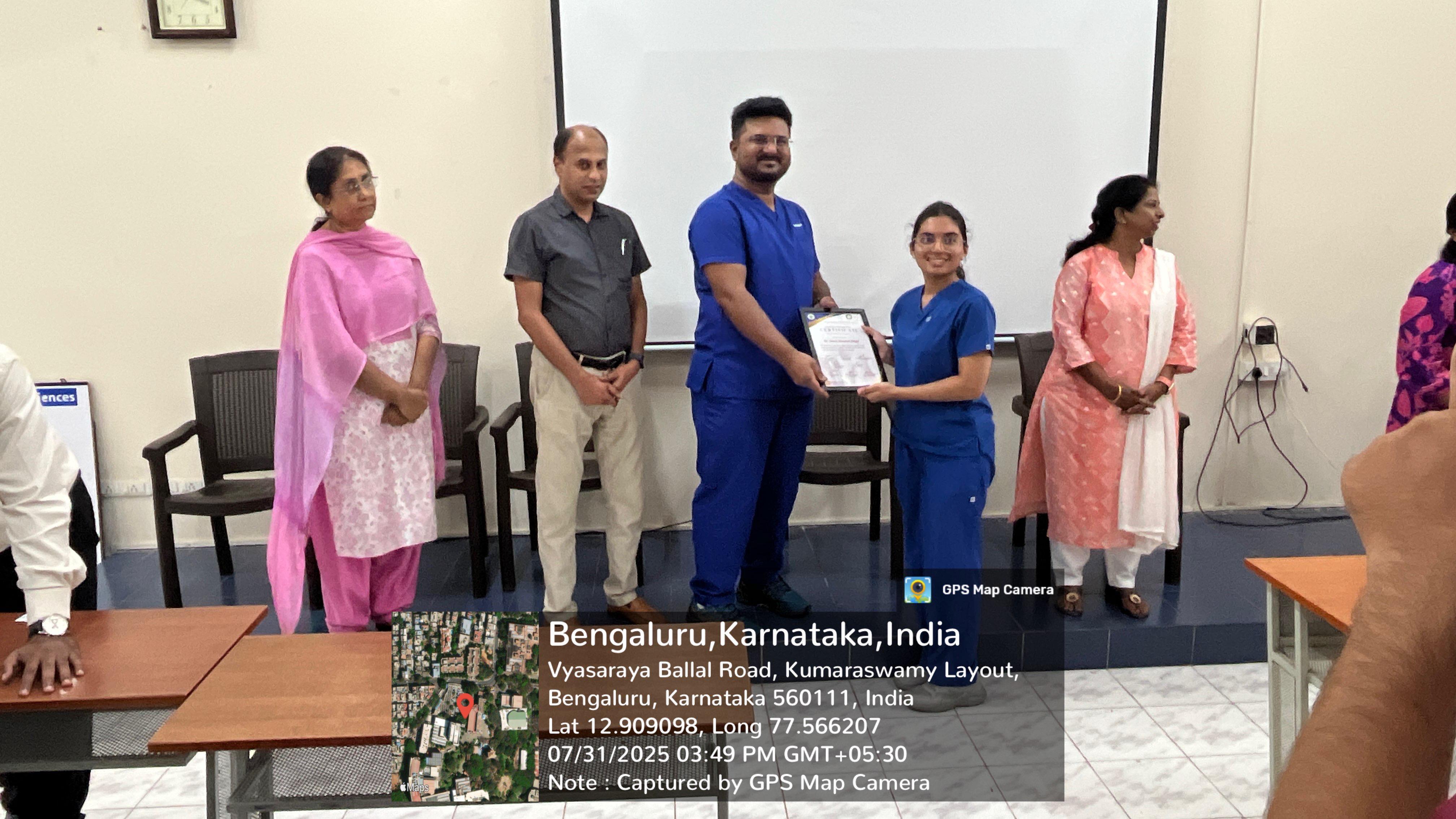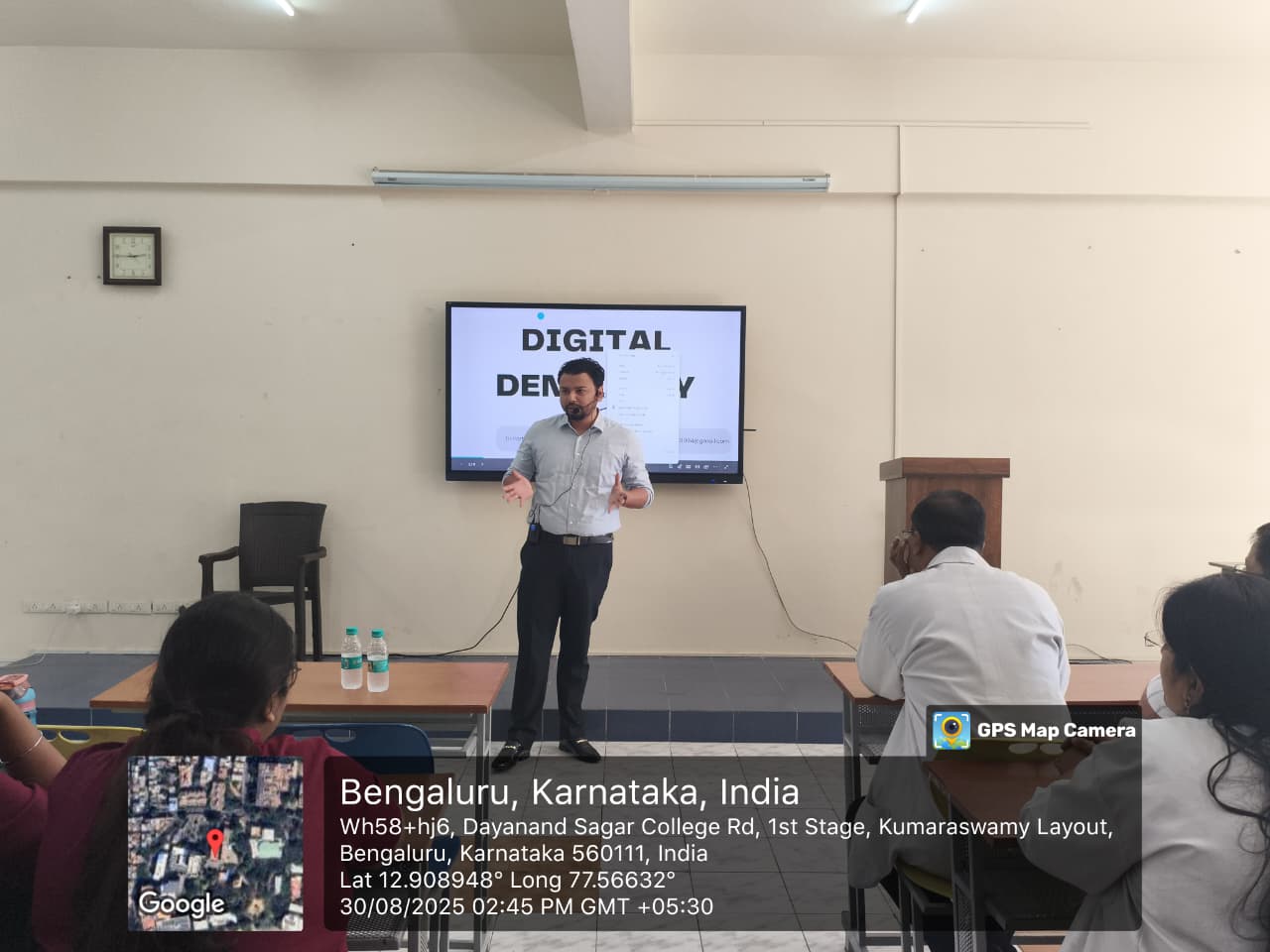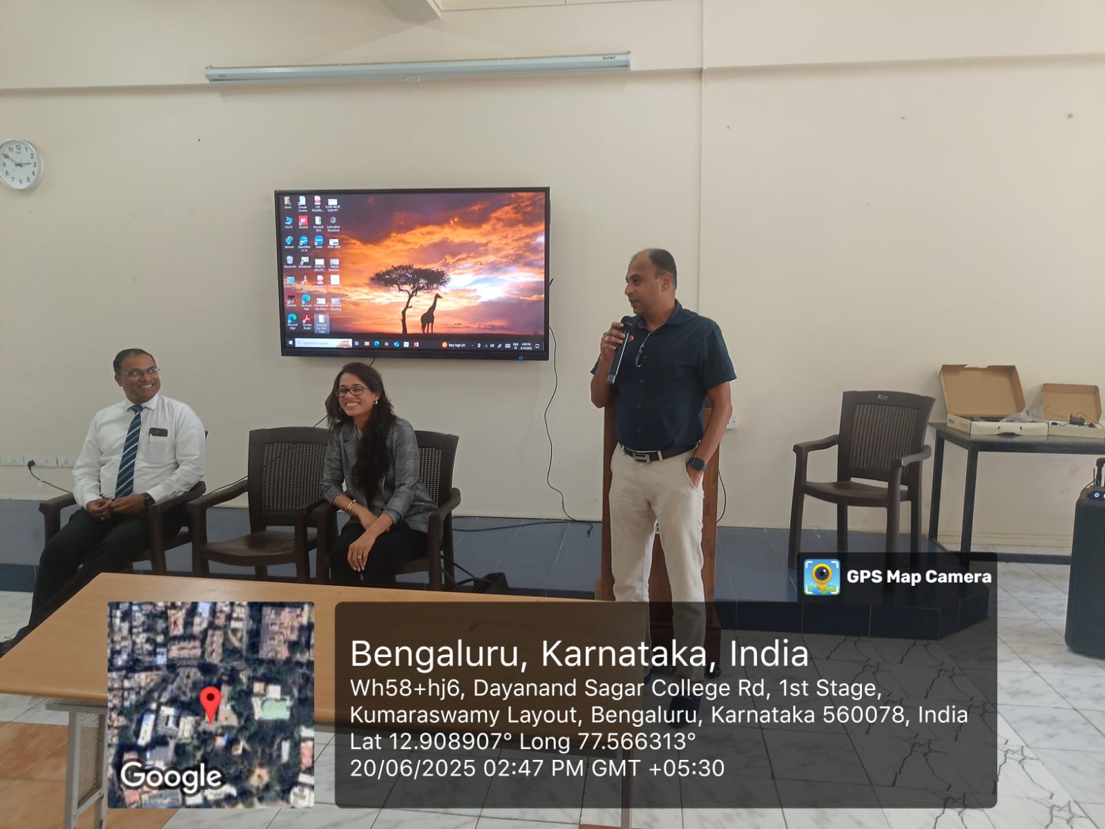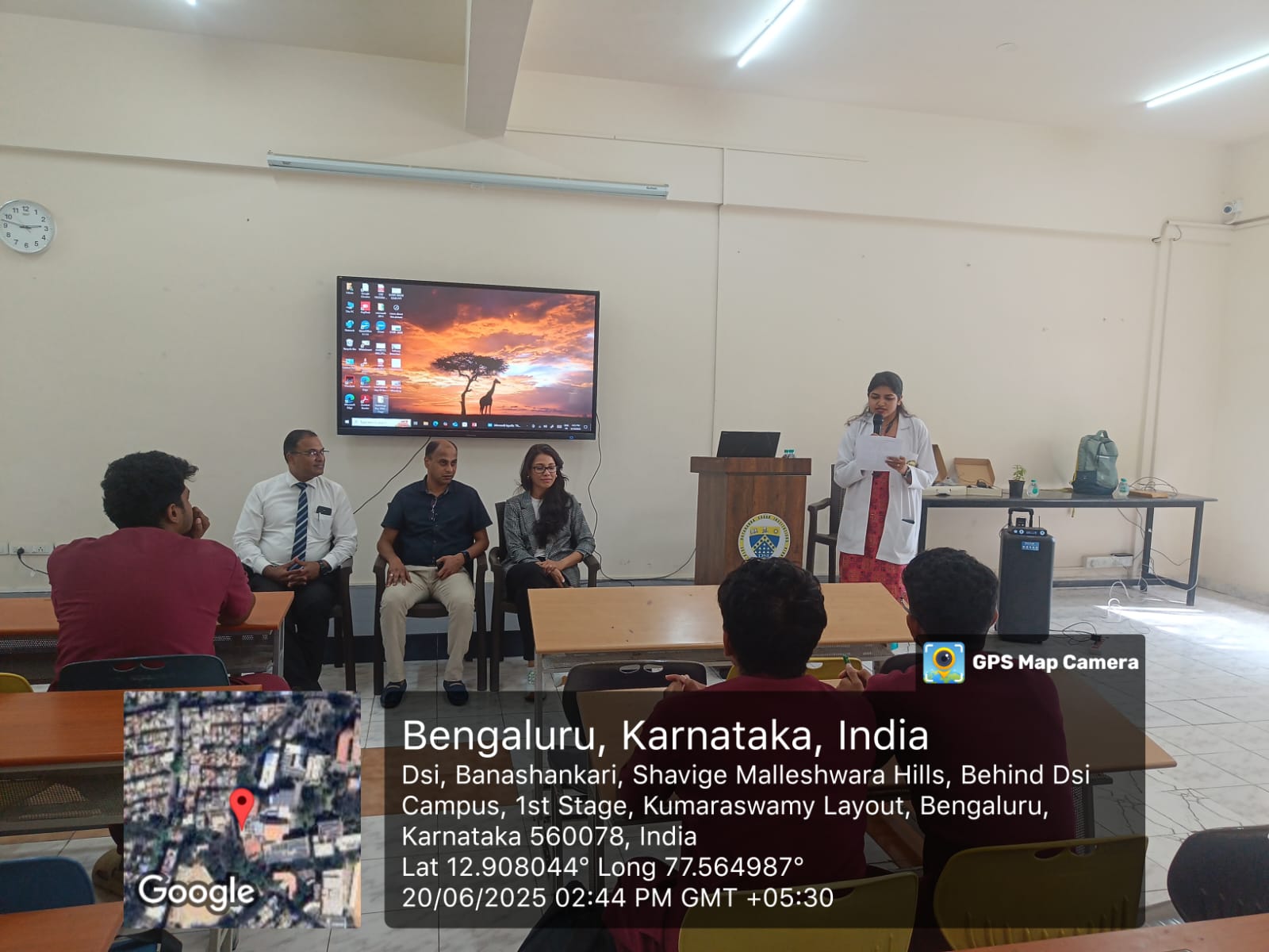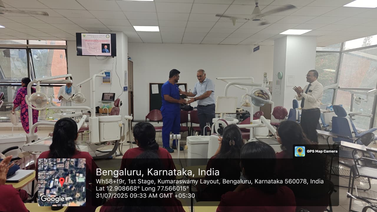 A Continuing Dental Education (CDE) program titled “Endocrowns Demystified – Lecture, Demonstration, and Hands-on" was organized by the Department of Prosthodontics (Crown and Bridge), Dayananda Sagar College of Dental Sciences, on 31 January 2026, commencing at 9:15 a.m. The program was coordinated and hosted by Dr. Shreyasee Maity, Senior Lecturer, Department of Prosthodontics. The event was attended by faculty members, postgraduate students, and interns from all departments of the institution. Dr. Hemanth M, Principal, Dayananda Sagar College of Dental Sciences, addressed the gathering and emphasized the relevance of advanced restorative dentistry, full-mouth rehabilitation, esthetic prosthodontics, and implant prosthodontics in contemporary dental practice. The resource person, Dr. Aparna Singhal, delivered a comprehensive lecture and clinical demonstration on extended E-max endocrowns, focusing on conservative and biomimetic restorative approaches with predictable long-term outcomes. The session included discussion of multiple clinical case presentations, highlighting modern prosthodontic solutions that integrate functional efficiency with esthetic outcomes. A hands-on demonstration using 3D-printed resin models was conducted for registered participants, enabling practical exposure to endocrown preparation and restoration concepts. The program concluded with an interactive question-and-answer session, followed by collection of participant feedback. The program concluded with a vote of thanks proposed by Dr. Suresh M. Nagaral.