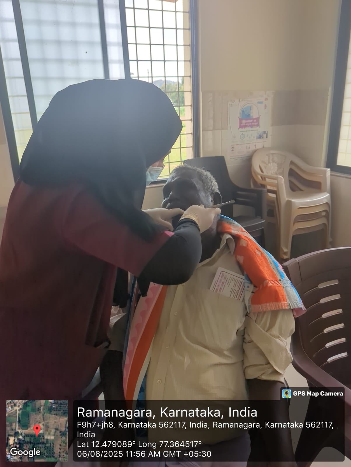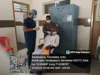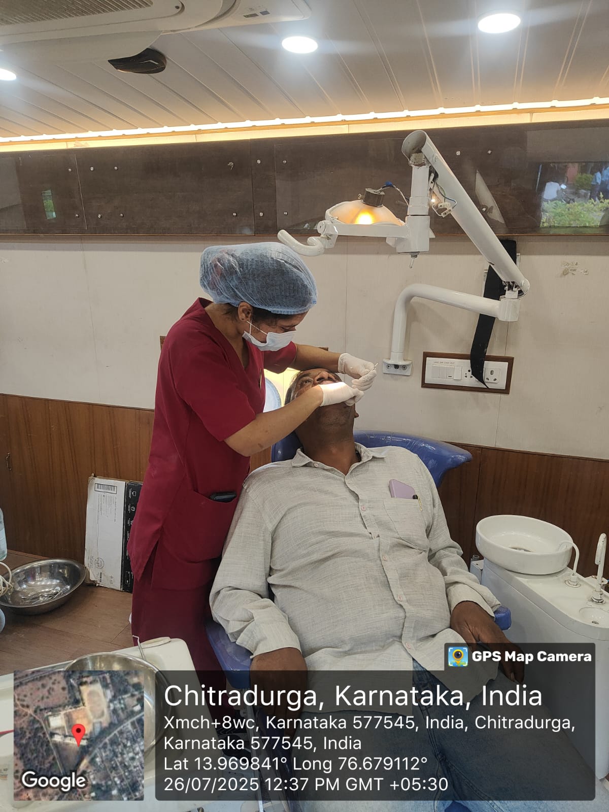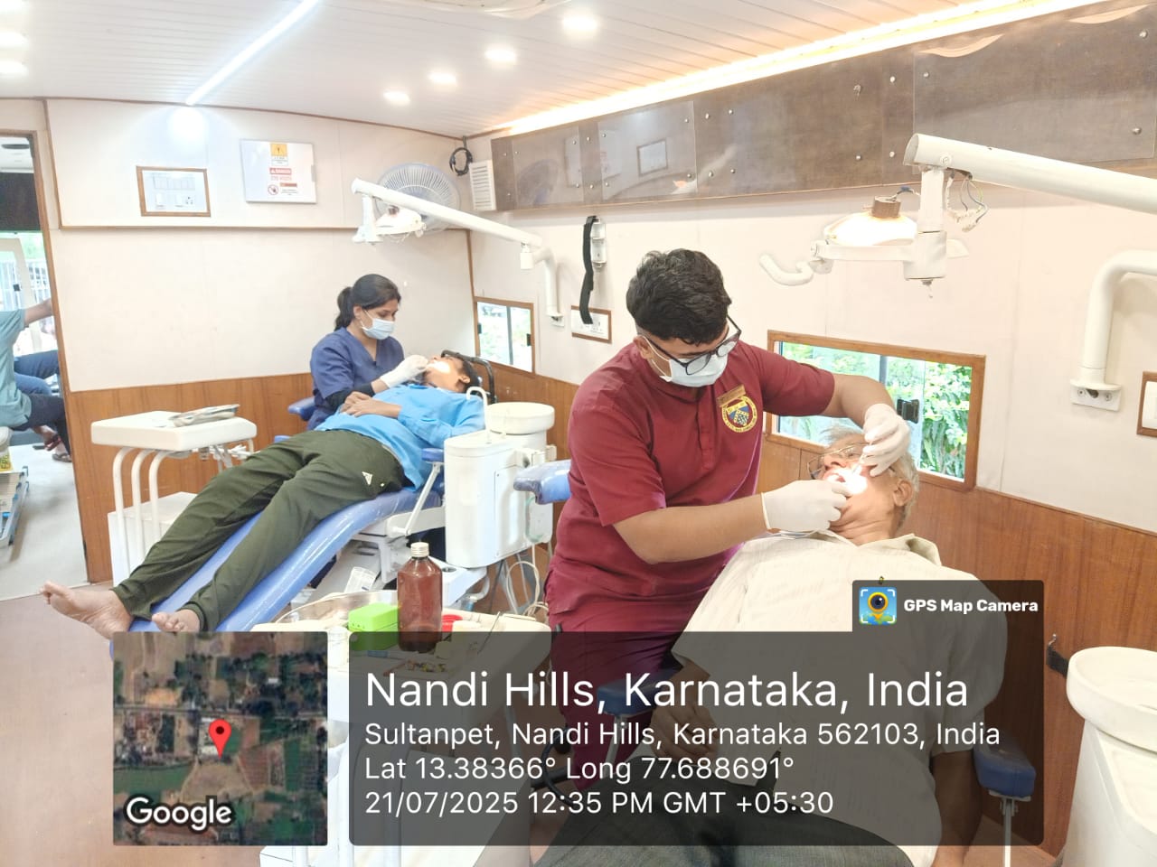 On January 21st, 2026, a dedicated team comprising 12 doctors, 5 interns, and 3 technicians, led by Dr. Suresh Nagaral, attended the camp. The team departed from the college at 8:15 am in a fully equipped mobile dental unit and arrived at the camp site by 9:30 am. Dental procedures commenced at 10:00 am and continued until 4:00 pm. All team members returned to the college by 6:00 pm. The first day focused on completing diagnostic impressions up to denture try-in for all patients.