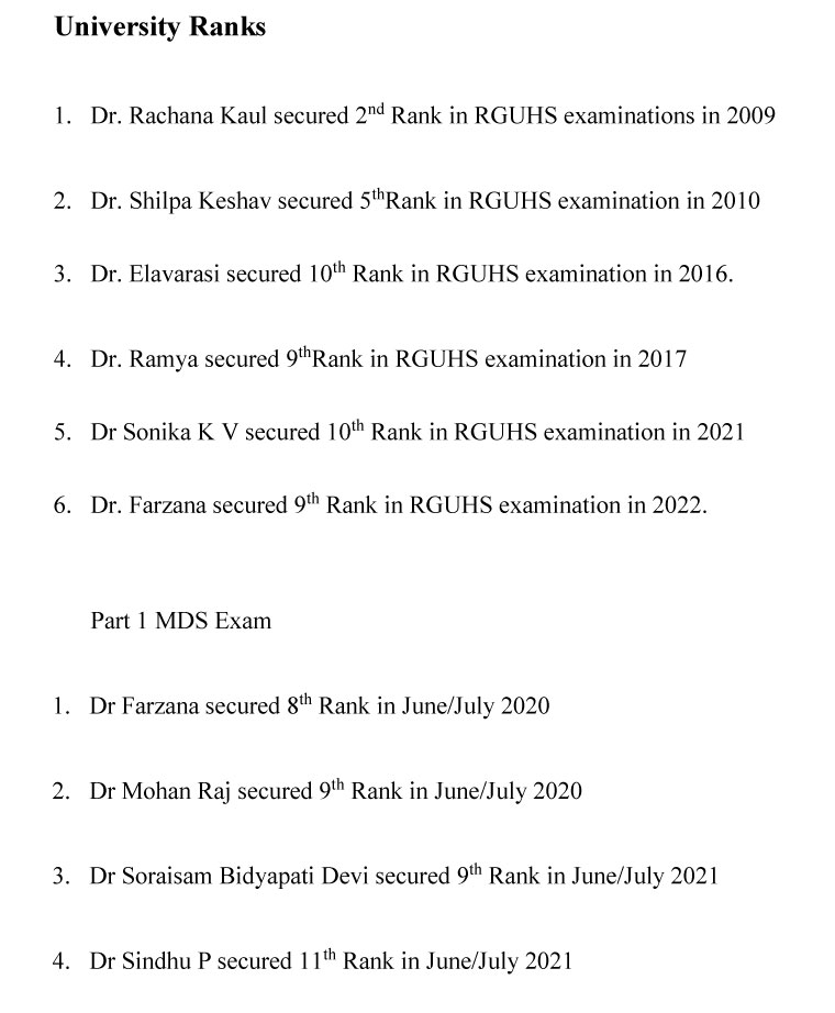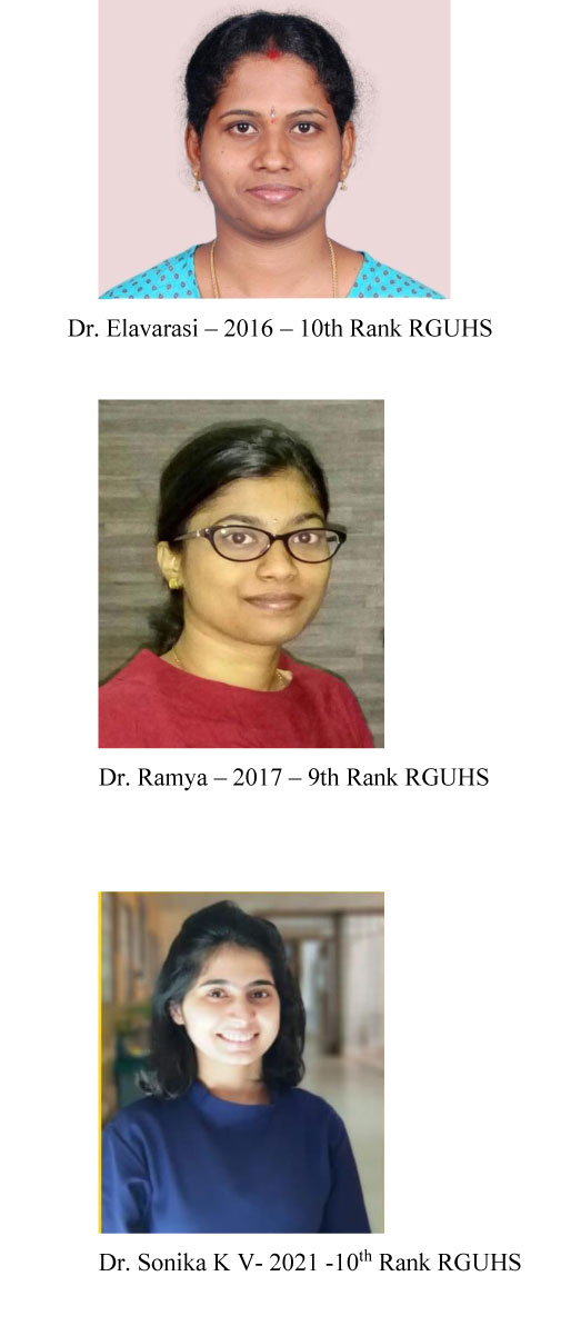 - Dr.Ramya - Competition in CDE program – “A quick review of Oral Medicine and Radiology”. Held at DayanandaSagar college of Dental Sciences, held on 20th March2017- First prize
