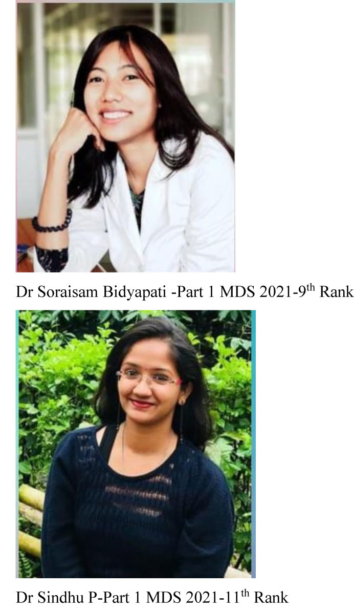 - Dr Sindhu –Poster presentation In International digital conference on cancer-2021‘early detection and diagnosis of oral cancer by Artificial Intelligence- A trained human eye”- 1st prize and got VANGAURD Award.4-14th Feb 2021