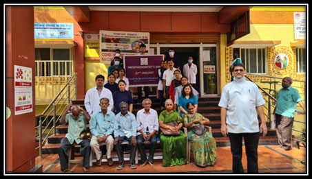 Department of Prosthodontics in collaboration with Department Public Health Dentistry, organized Danta Baghya free denture camp at Konankunte in January 2021.14 completely edentulous patients were treated. Staff, Post graduate students, Dental Technicians and Interns of Department of Prosthodontics and Public Health Dentistry, participated and helped in making the dental camp a huge success.